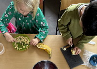 Am Folgetag wurde in den Klassen  fleißig geschnippelt und geschlemmt.